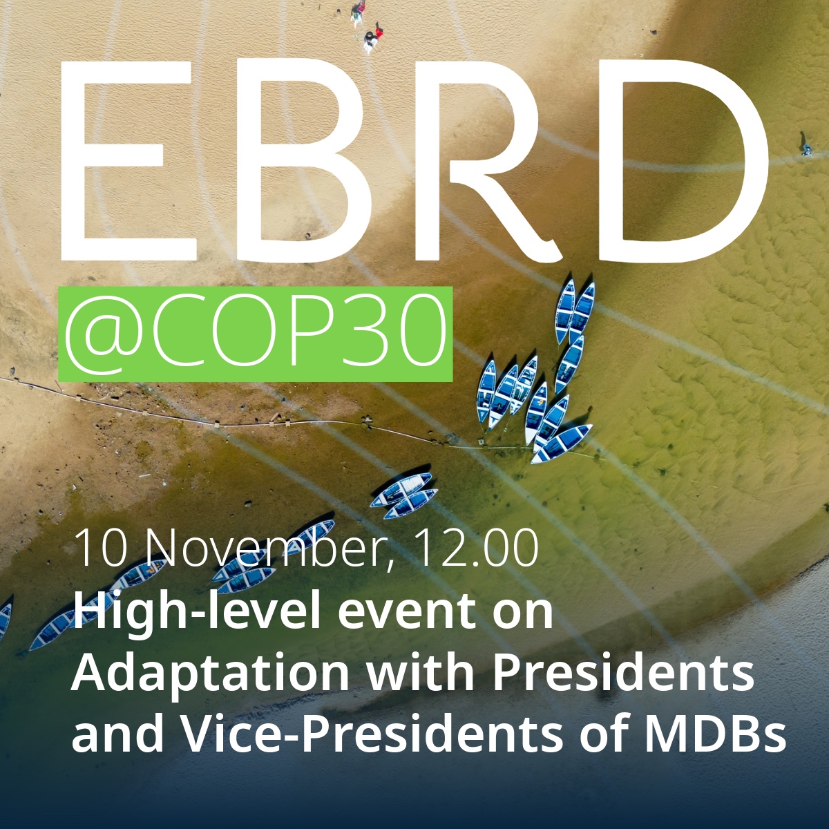 This year’s conference – COP30 – will take place between 10 November and 21 November 2025 in Belém, Brazil, while Sao Paulo and Rio de Janeiro are set to host pre-conference events where the EBRD delegation will take part in various events between 3 and 5 of November 2025.