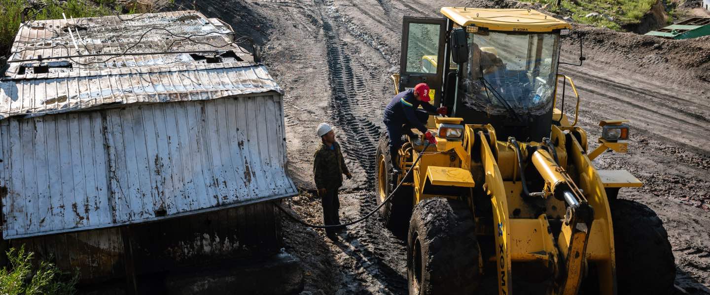 Apart from the ongoing remediation works at the uranium site, the main source of work in Min Kush is a series of open cast coal mines.